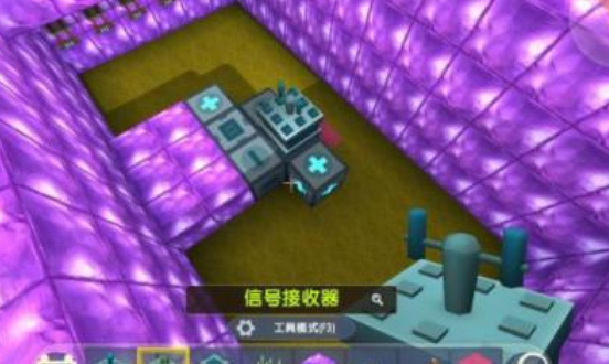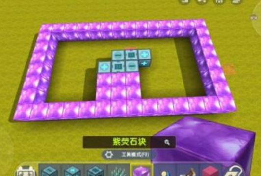 3、开始建造基础框架,使用紫荧石块在建造好的发动机周围围绕一圈。