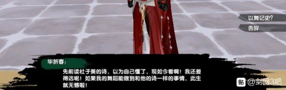 阿梨不在原来的位置了,在习武场,和阿梨对话,让我们也去跳,我就免了吧