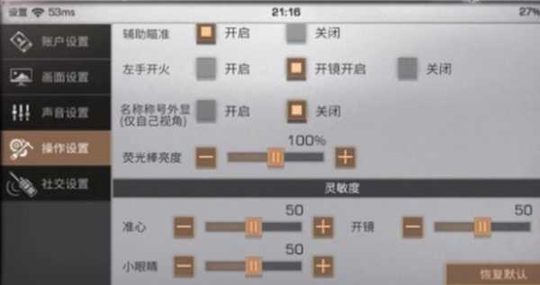1、首先玩家在获得M24后打开游戏设置,在操作设置中可以看到开镜开启的选项。