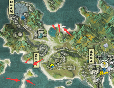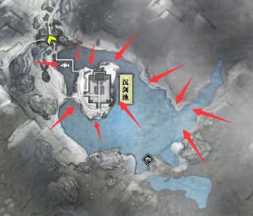 1、刷新地点:秦川沉剑池、移花岛沧海明玉。如下图,箭头处为常刷新地点,白色鱼就是鱼群。