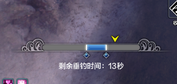 ②冰鱼:如下图所示是冰鱼起竿截图(原14秒,截图耽误了时间,显示13秒),冰鱼的鱼群设计比明玉子恶心多了,因为14秒的鲤鱼和冰鱼几乎一样,好像有细微差别能分辨出来,我索性14秒靠中偏右全部起竿,实在懒得细看太废眼睛(鲤鱼别丢3金挂交易很多人要)。