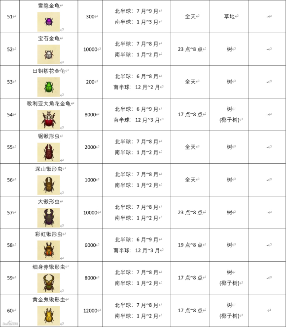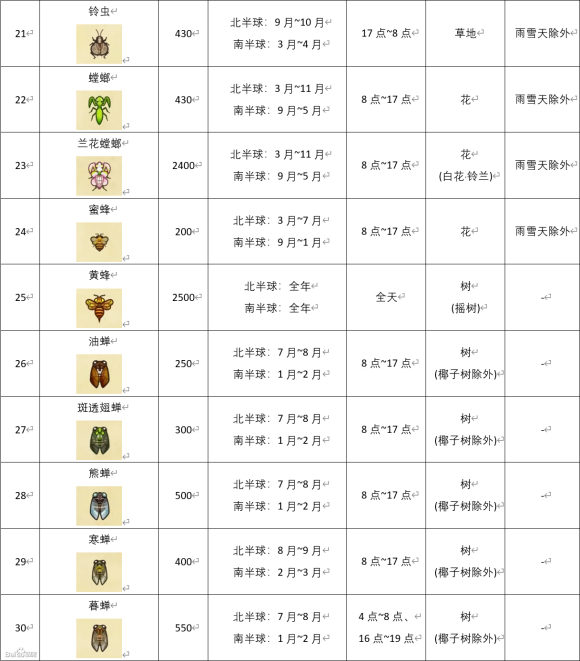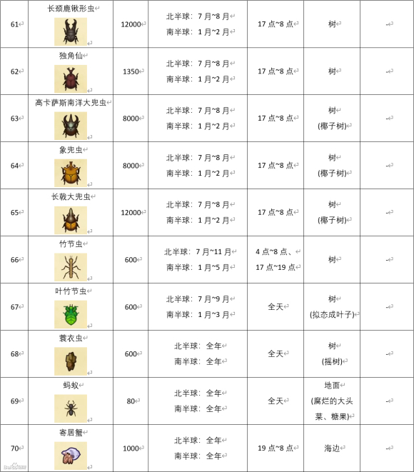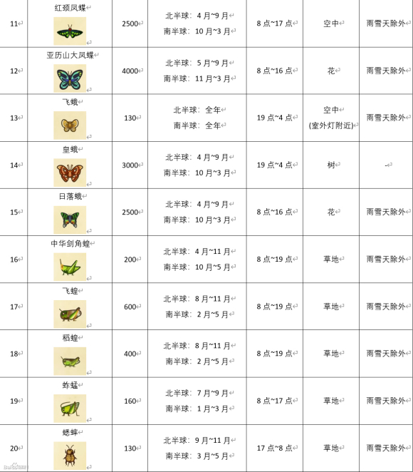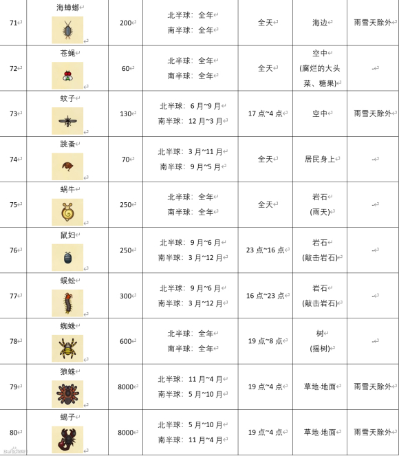 动物森友会《AnimalCrossing》所有虫类图鉴