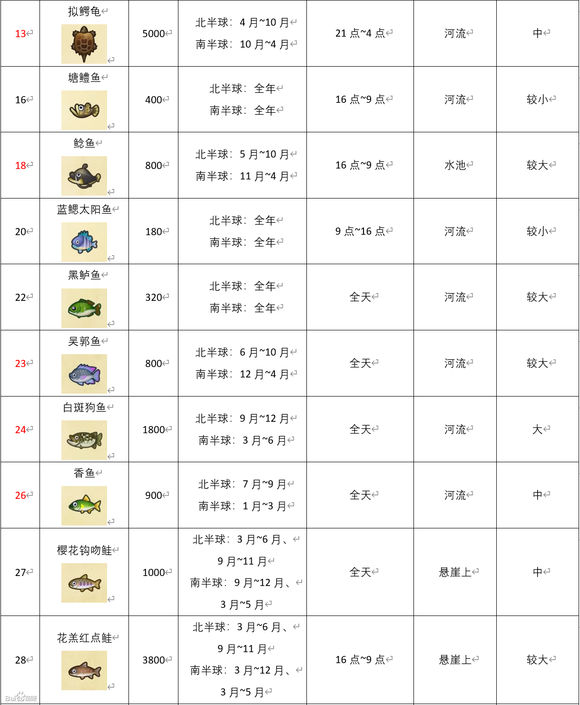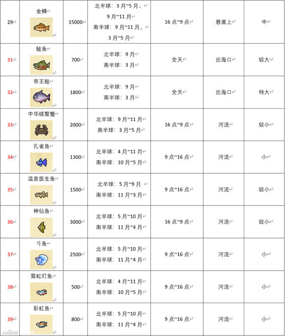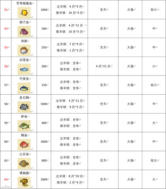 动物森友会《AnimalCrossing》3月南半球鱼类图鉴