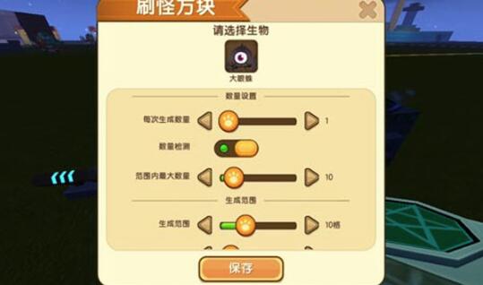 3、除了选择生成的生物外,还可以选择生成数量、生成范围以及生成间隔。