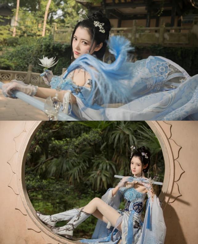 这位小姐姐COS的是圣绣系列的冰云。这位小姐姐表示,冰云是她在天涯明月刀的第一套外观,那时候的服装并没有像现在一样琳琅满目,只有这冰云的蓝,是她看着最喜欢的。我想小姐姐也是因为有着对天刀游戏的情怀所以才COS冰云的吧。小姐姐这细致的妆容,精致的服装真是美极了。