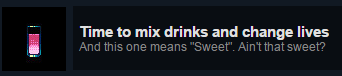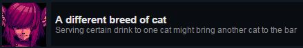 达成方法:调酒失败(译注:制作出红色的神秘乱码饮料即可)