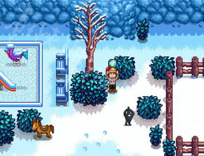 玩家需要在冬季的6am到4pm之间从农场往公交车站走去便可触发动画。