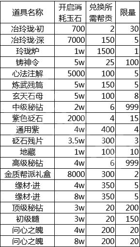 一个号清完琴魔外所有话本能够为所在帮派提供7720玉石。帮派团打完十人本一条龙后能够为帮派提供4.4w玉石,五人本一条龙则能够提供1.66w玉石。