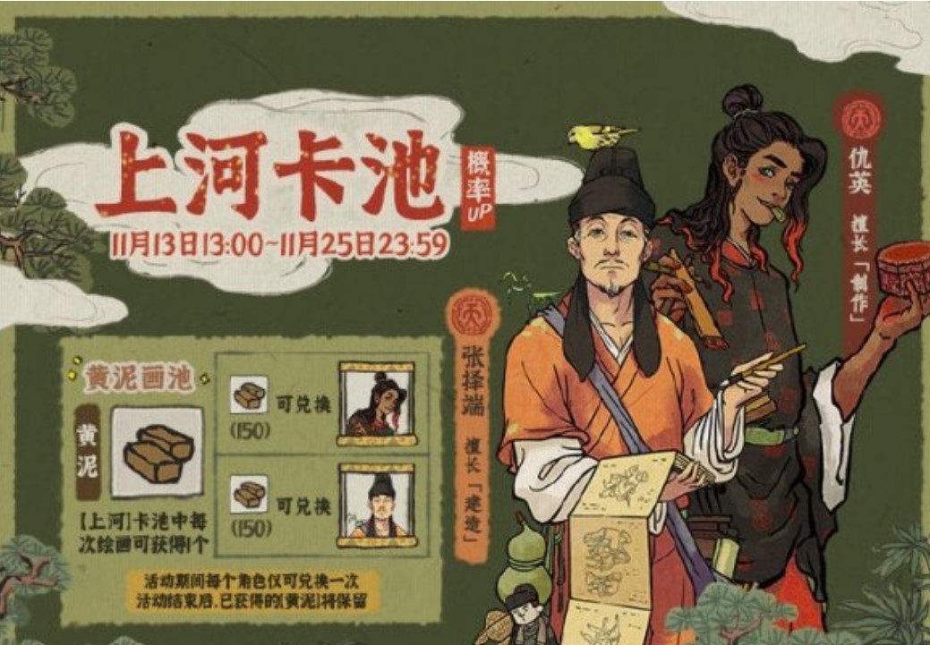 每次在【限时黄泥卡池】中绘画都将获得一块【黄泥】。