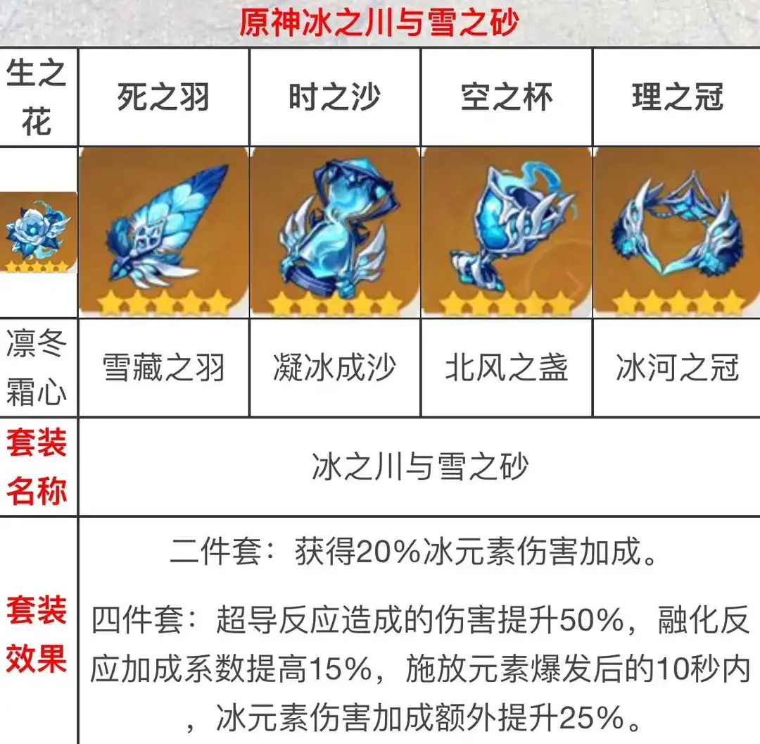 原神冰之川与雪之砂套装属性怎么样?冰之川与雪之砂是原神1.2版本的新增圣遗物套装,不少玩家可能还不太清楚该套装的属性与获取方法,下面就一起来看看吧。