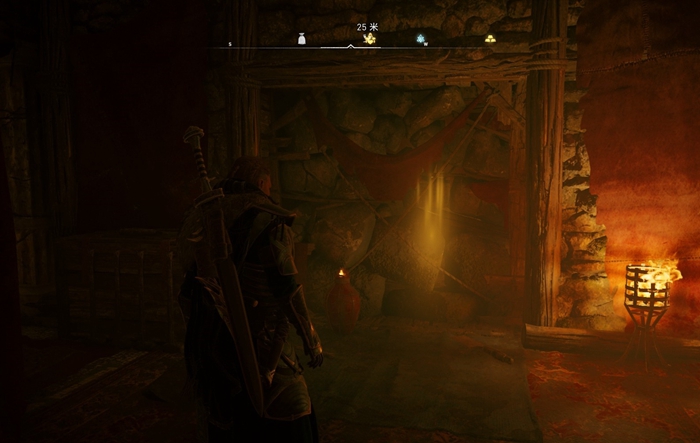 来到梅尔顿存放油罐的屋子,打破上方的木板进入屋中拿到油罐。