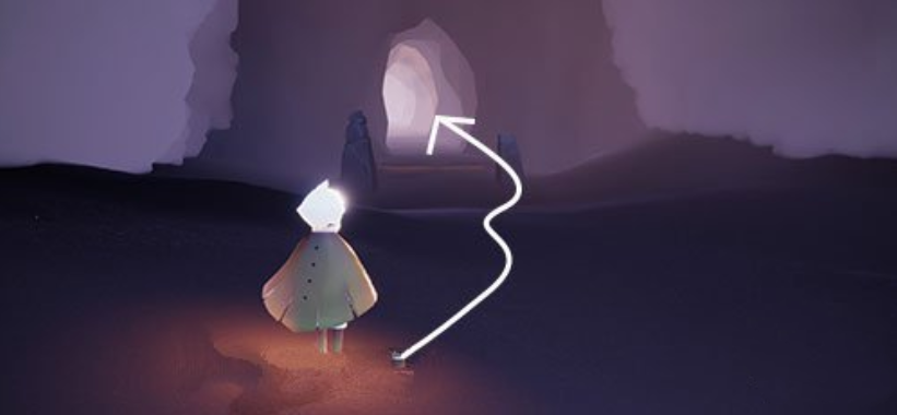 此时在这个山谷上方,就可以看前面,就能看到有一个云层组成的洞穴,然后玩家可以张开翅膀飞过去即可。