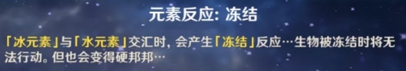 冰元素可以参与的元素反应之一「 冻结 」反应是唯一可以长时间提供控制效果的元素反应。
