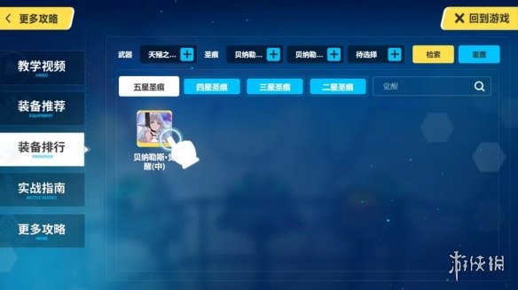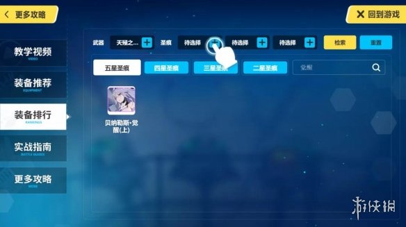 例如在雷之律者角色页下,固定武器为天殛之境:裁决,上中位圣痕为贝纳勒斯·觉醒,点击“检索”即可一键查看下位圣痕的热门选择