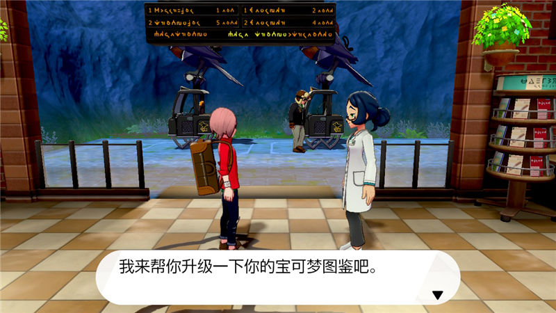 到了铠岛,一下车,会有女人说我们是第一次来的,要帮我们升级宝可梦图鉴,升级完后准备出车站,