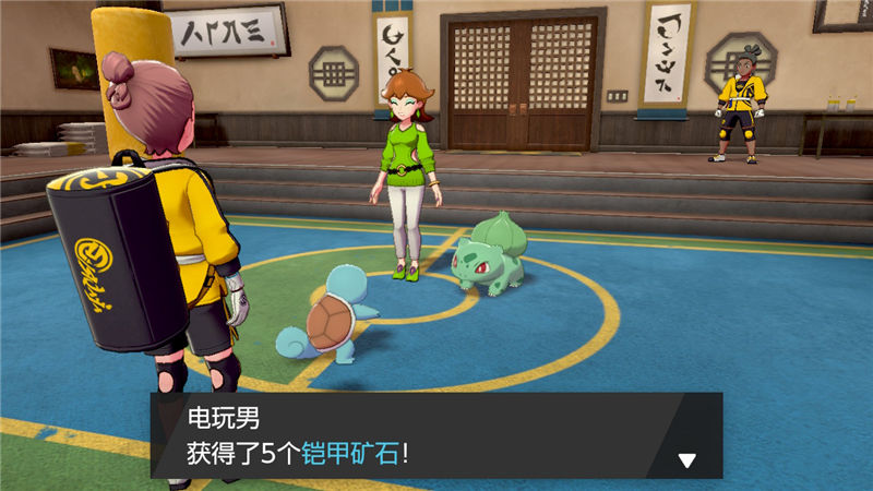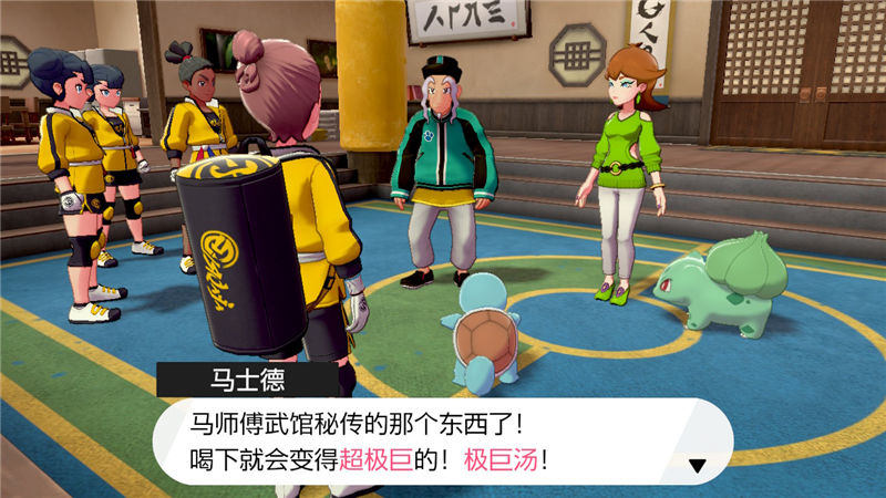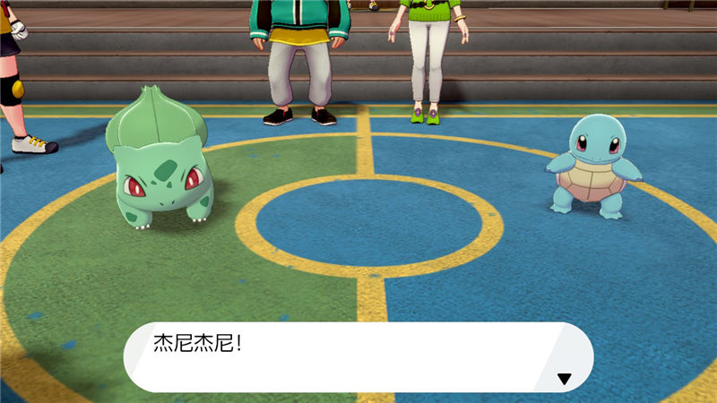 之后师母叫出了我们熟悉的御三家的其中两名成员,那就是杰尼龟和妙蛙种子了,师母要送一只给我们,我们当然选择杰尼龟了,这两只宝可梦是可以超极巨化的