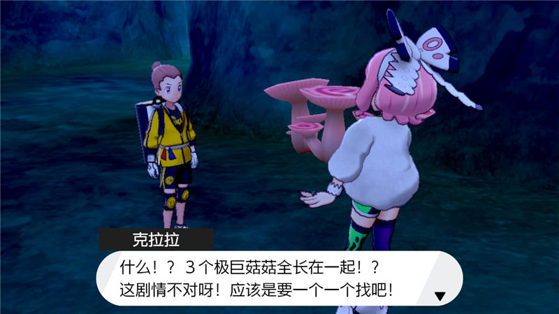 进入洞窟里面就直接看到了极巨菇菇了,准备要摘取第一朵极巨菇菇时,克拉拉赶上来了,说3个极巨菇菇长在一起了,吐槽剧情不对啊,连我也觉得不对,必须得一个一个找就是的