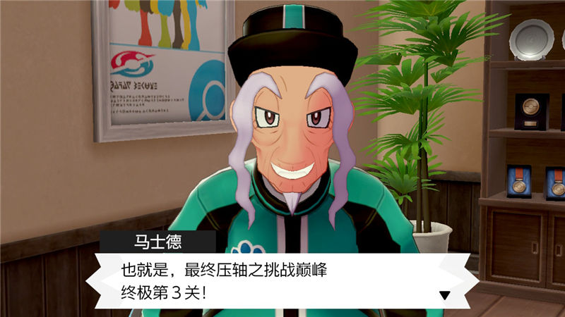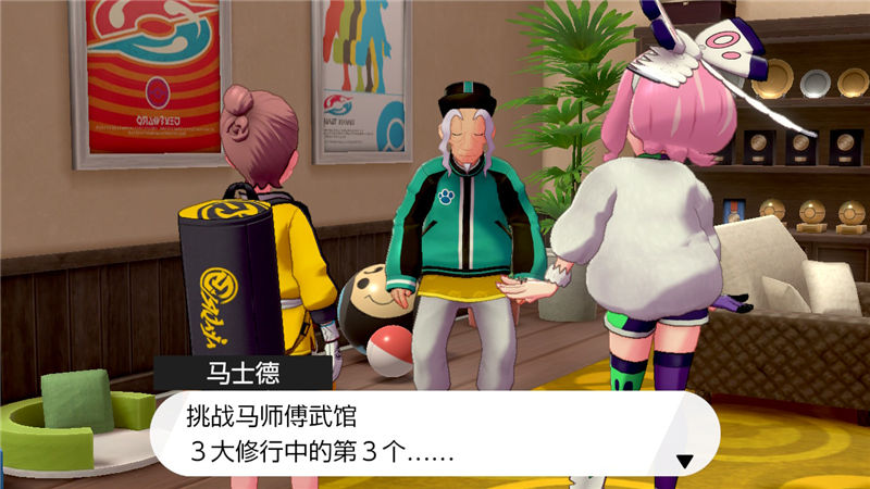 马师傅让我们两个再次进行对决,可以使用极巨化战斗,地点就是道馆后边