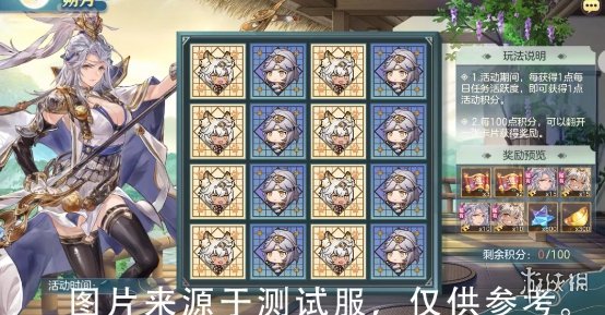 活动期间,每获得1点每日任务活跃度,即可同时获得1点活动积分,每消耗100点活动积分,即可在月影赠礼活动中翻开一张卡片。卡片背面包含祈愿招募券、马云禄碎片、花鬘碎片、祈愿星币、元宝等各种奖励。
