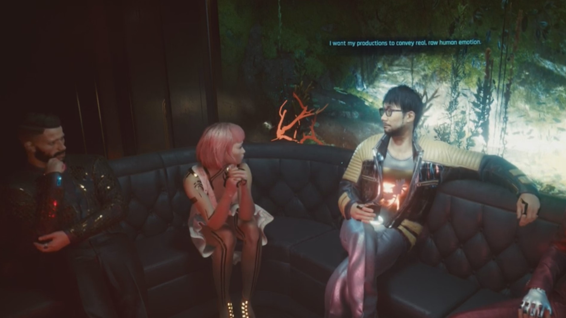 这位NPC很明显是以小岛秀夫为原型,他有着与众不同的蓬乱发型,戴着圆形眼镜,穿着时髦的皮夹克。如果玩家在他附近转悠的话,他会问你:你知道我的作品吗?你给我带来了什么?之类的话,之后他就不搭理你了。