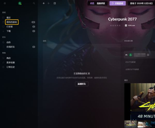 2.点击界面左侧*拥有的游戏*菜单项后选择《赛博朋克2077》