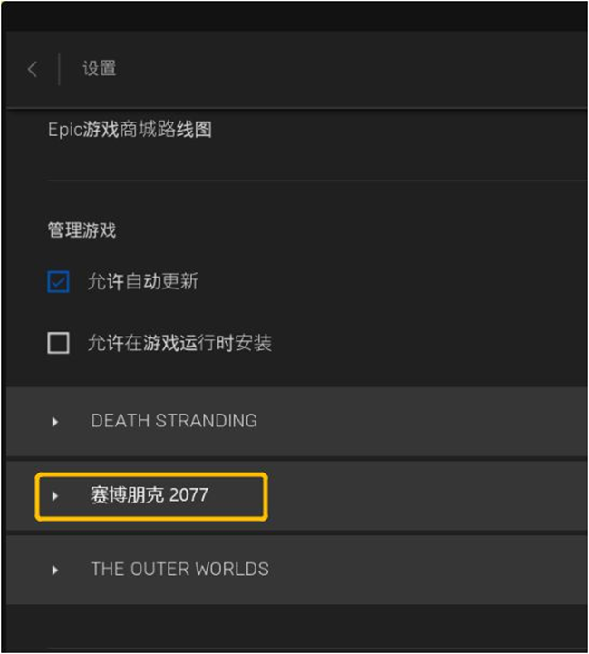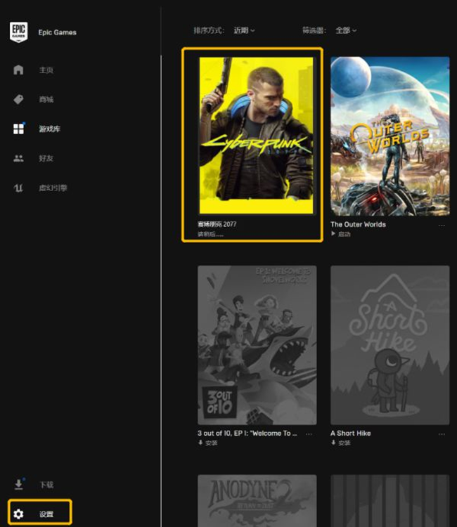 2.确定您的游戏库里拥有《赛博朋克2077》后点击左下侧*设置*选项