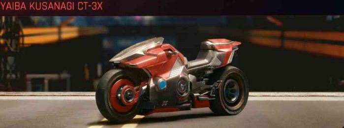 刃 草薙 CT-3X是最快,最便宜的摩托车,最初与荒坂合作制造。其光滑的空气动力学框架掩盖了邪恶强大的发动机。理想情况下,任何人骑行时都应配备反射助力器,以免在急转弯时以100 MPH的速度飞入交通信号灯。草薙是各大帮派尤其是是虎爪帮中的最爱。