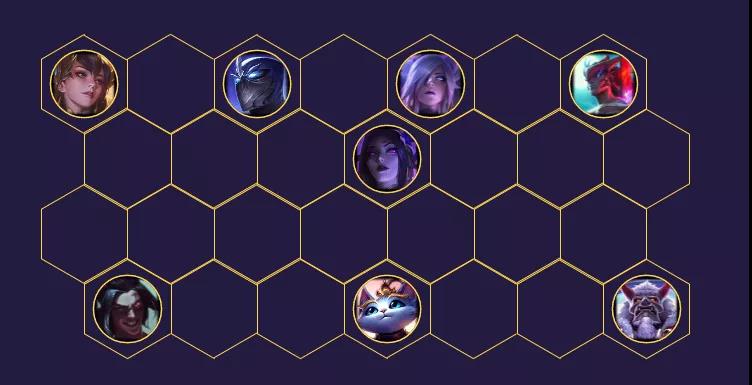 过渡到八人口后,就是找凯隐、永恩与时光老头(前面用风女代替)凑齐阵容,这个时间段再开始找天选牌也是不着急的,凯隐建议变红凯。