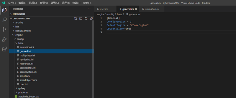 在游戏目录:Cyberpunk 2077/engine/config/base 中的“General.ini”文件中添加
