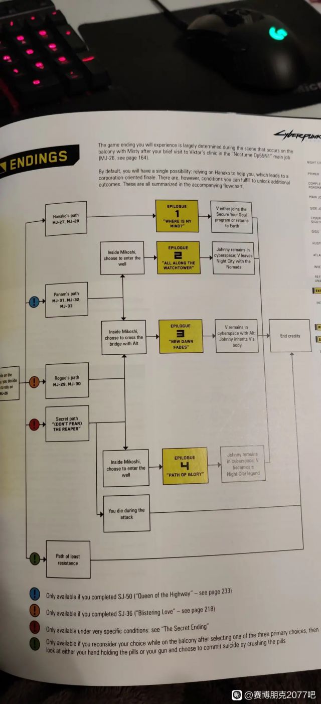 选择这个选项后,接下来就是要独自袭击荒坂塔,逃离出大爆炸。过程中会有许多精英敌人,但你只一次机会,一次都不能死,如果死了,即使回到上一个检查点,你也没有再次尝试的机会了。所以官方攻略建议,如果想要尝试这个结局,请保证自己已经完全了解整个游戏系统和机制,拥有最高级装备,适应各种战斗情形了。这是皆大欢喜也是最难的结局,银手留在了赛博空间,V成为了夜之城的传奇。