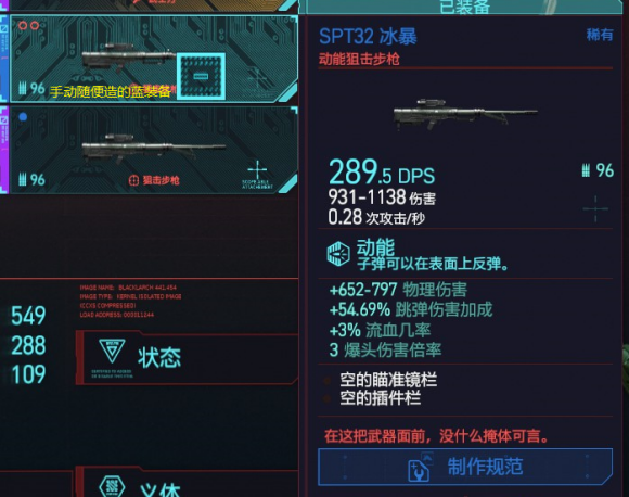 我分解几个垃圾用几个破材料就能制造一把 蓝色冰暴 面板伤害是紫装的1.5倍,骷髅头也直接杀
