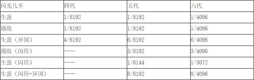 六代提高了野生遇闪的基础几率,那么孵蛋出闪的几率也提高了,为1/4096
