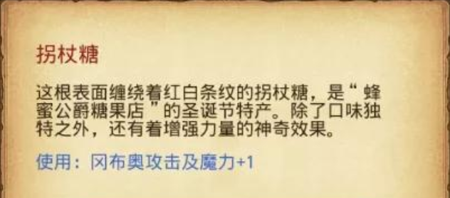 不思议迷宫拐杖糖有什么作用?游戏中圣诞节的到来,因此也推出了许多与圣诞节相关联的圣诞武器,拐杖糖是其一,那么其有什么作用效果呢?下面是小编带来的不思议迷宫拐杖糖作用效果介绍,一起来看看吧。