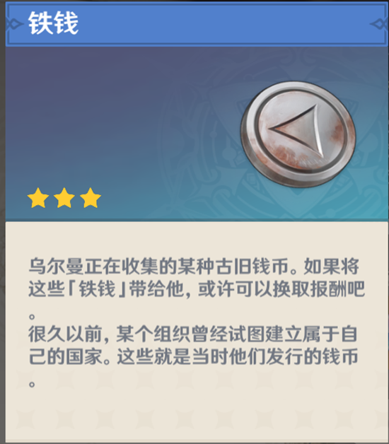 (任务道具“铁钱”,通过搜索区域内小型光柱点位获得)