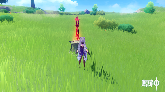 (从实际环境上来看是在刻晴站着的位置!注意右前方的灌木丛,对齐站好!)