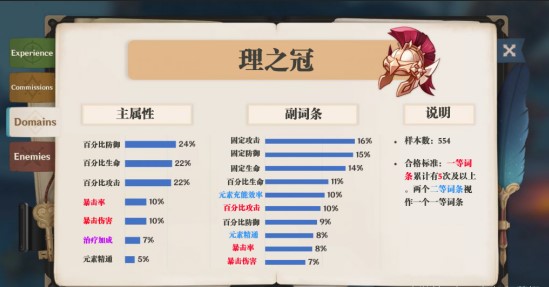 能够获取暴击率/暴伤的手段同样不少,但是距离溢出还差得远。少量五星角色突破属性(迪卢克/刻晴),少量武器副属性(天空之翼,和璞鸢),极少量武器特效(天空之翼),极少角色技能(刻晴四破天赋,莫娜四命等)。因此理之冠上我们基本只可能选择双爆。