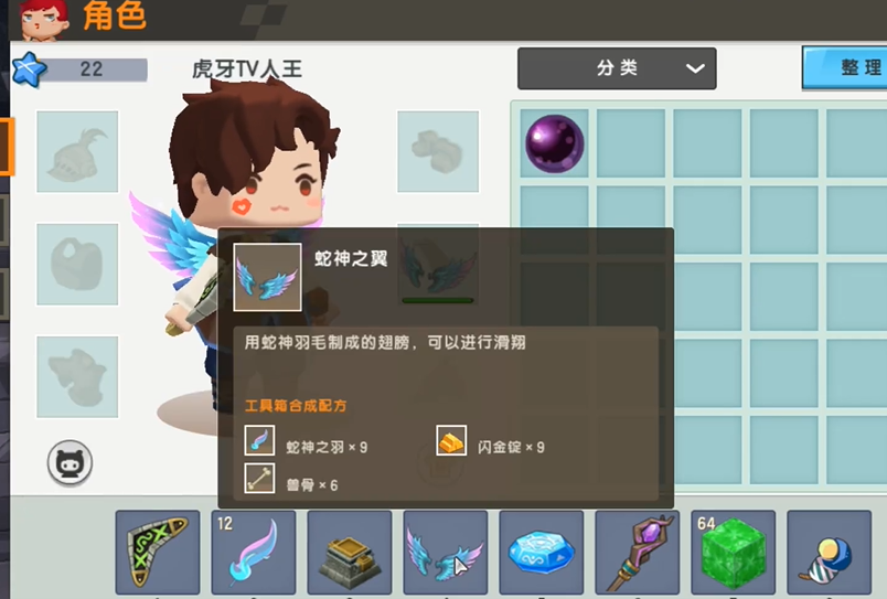雨林里面有一个类似沙漠神殿的建筑,里面有祭台能够召唤羽蛇神,就是最新的BOOS。这个羽蛇神有两个形态,第一个形态不需要召唤,打死之后会爆出很多奖励,有蛇神之翼、蛇神之羽,其中小编最喜欢蛇神之翼,非常的漂亮,不能飞但是可以滑翔,而蛇神之羽就是合成蛇神之翼的,如下图展示,另外还有回旋镖武器,这个武器飞出去还可以飞回来哦。