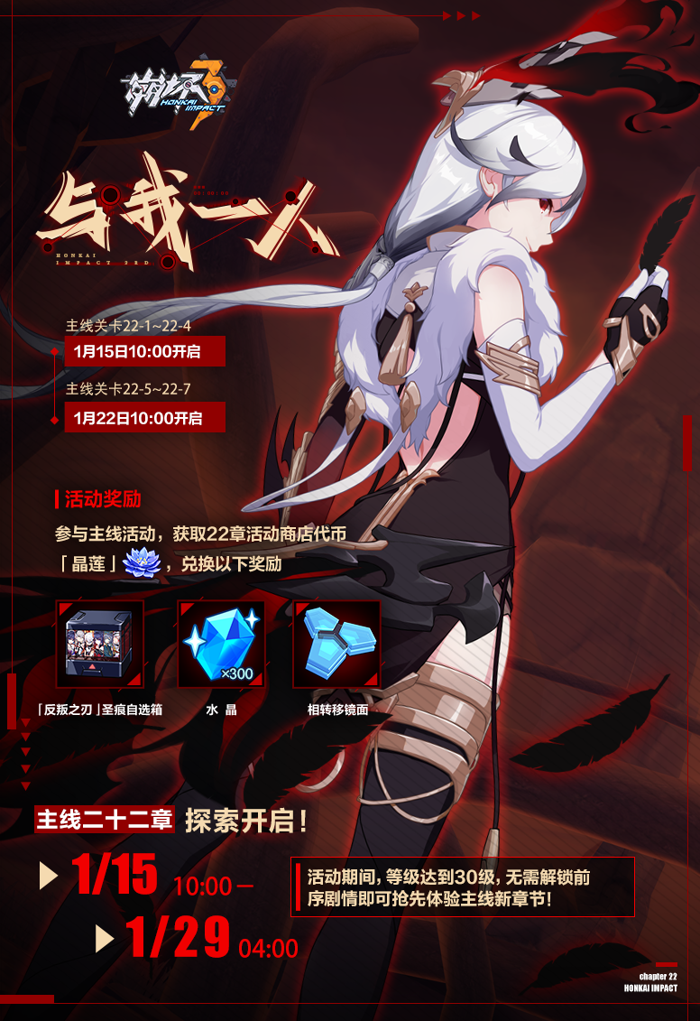 崩坏3主线二十二章活动开启活动提醒 | 主线二十二章「与我一人」开启!