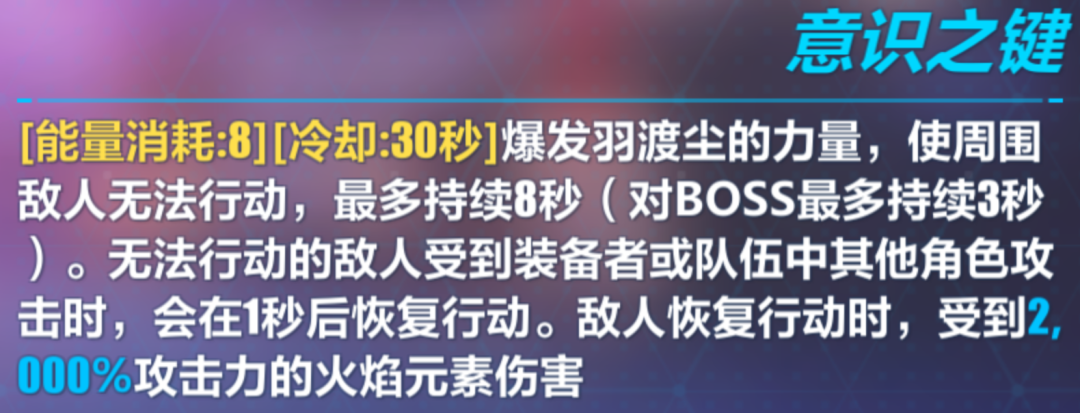无法行动的机制类似于月魂的冰牢,且范围极大,几乎覆盖全场,2000%的超高伤害可以触发叶采章和牛下。