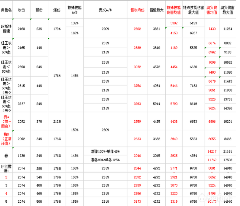 由于没有加入减伤公式与种族特性,故部分角色实力是>数据测试的!比如:阿斯特丽德