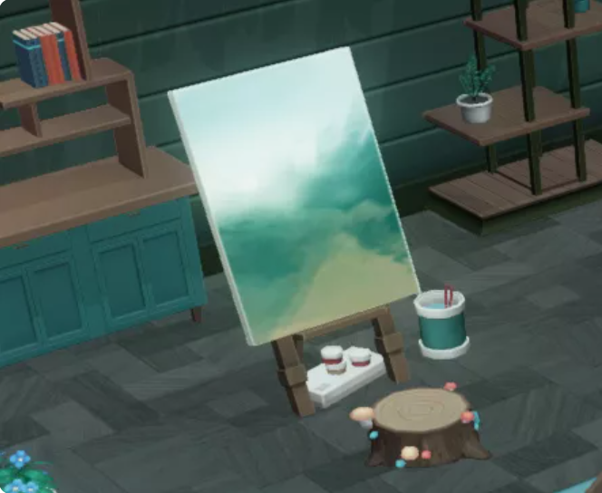 小圆桌旁有一个小画板,地上整整齐齐摆放着颜料,没错!用来创作绘画灵感最合适不过啦!