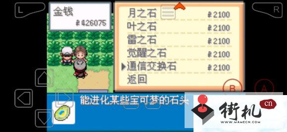 找这个大妈可以购买各种特殊石头,买个通讯进化石给鬼斯使用