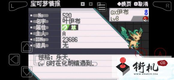 打开背包,点击叶之石,使用,点击伊布,你就可以得到一个草属性的叶伊布了,到了后面打完草系道馆给它学习极巨草原,打水系道馆非常好用