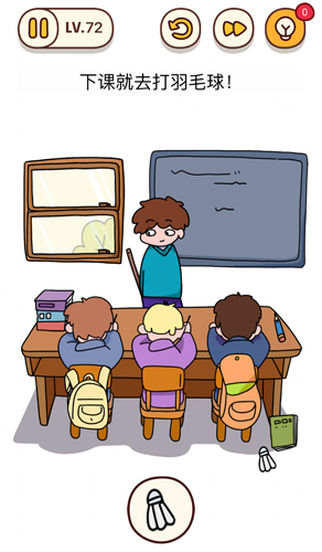 烧脑大师第72关下课就去打羽毛球怎么过?烧脑大师第72关答案是什么?