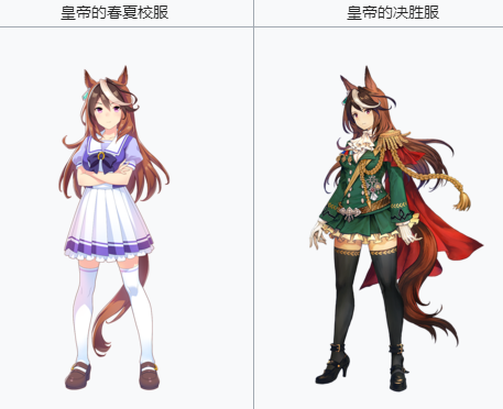 威风堂堂的威严,和与之相称的实力与实绩并存。与“皇帝”之名相称的首屈一指的超级马娘。性格沉着冷静,光明正大的高尚之人。其存在已经被后辈的马娘当做类似信仰的对象来崇拜。