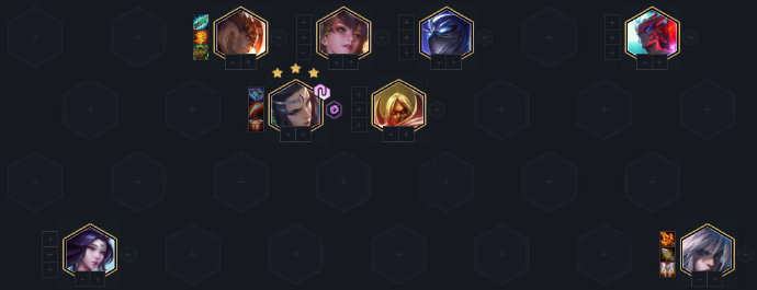 阵容的站位前排放一些比较肉的英雄,乌鸦顶前排(如果跟盲僧对位放第二排),3宗师放前面,开局减对手攻速。第二排放莫甘娜、吸血鬼。风女、泰隆2玉剑仙沉底位站位。