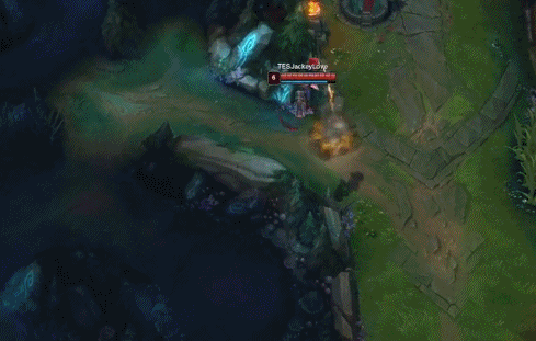 由于当时这个片段是上帝视角,所以看起来效果并不是非常明显。但如果是选手个人视角,JackeyLove小炮在回线的时候,蛤蟆这个位置几乎是盲视野,加上敌方打野位置不明确,其JackeyLove也有理由早已猜到Xun的乌迪尔在偷野,只不过这一屁股下去坐死了蛤蟆,真的是意料之外,为何时机这么准?难不成还有透视一说?