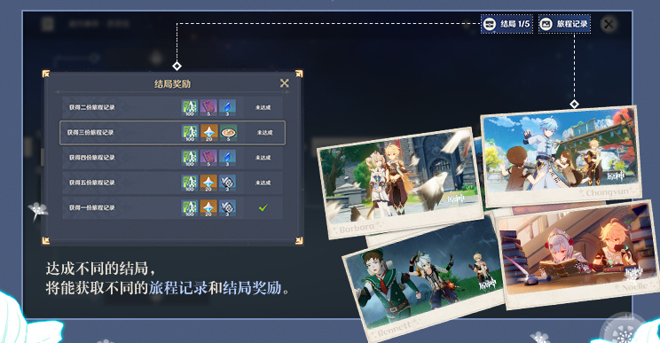 达成不同的结局,将能获取不同的旅程记录和结局奖励。