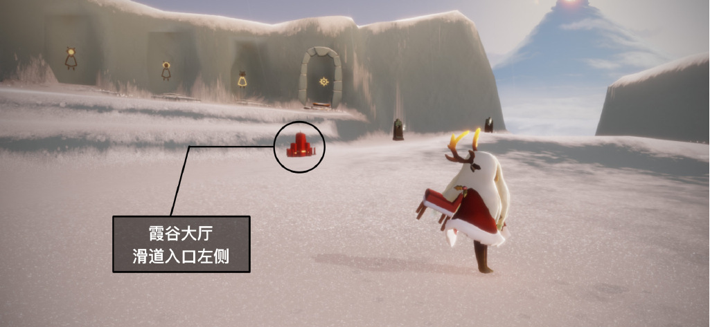 1、今天的大蜡烛都分布在霞谷地图,第一根大蜡烛在霞谷大厅滑道入口左侧;