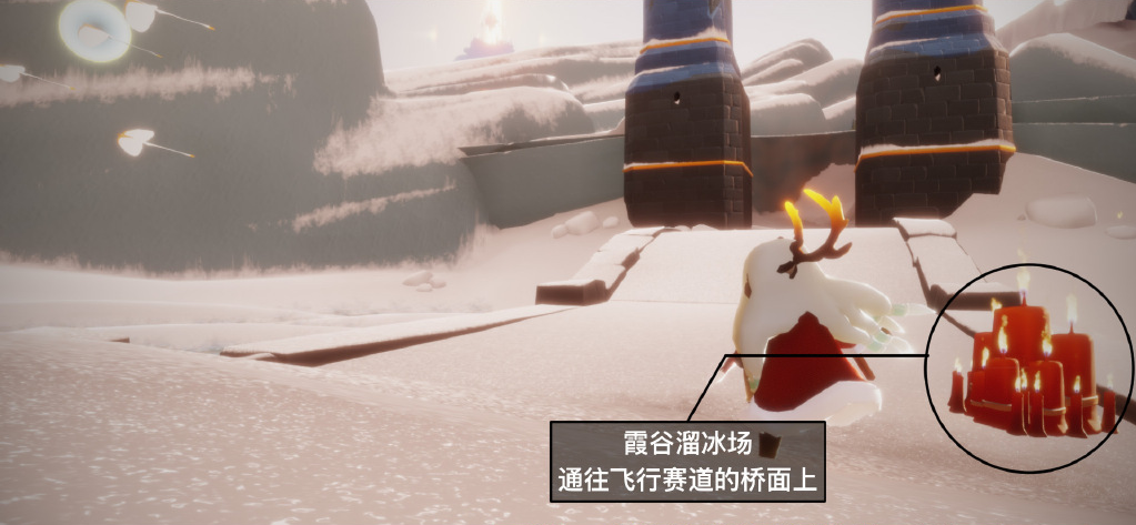 2、第二根大蜡烛在霞谷溜冰场,通往飞行赛道的桥面上;
